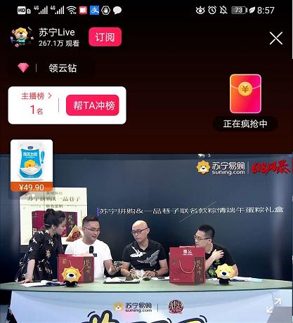 緊接著蘇寧拼購總經(jīng)理張奎作為用戶帶來蘇寧拼購&一品巷子聯(lián)名款粽情端午蛋粽禮盒,該款聯(lián)合粽子內(nèi)含四葷四素,更有意思的是竟然贈(zèng)送4個(gè)高郵咸鴨蛋。我猜想在直播時(shí)候孟非心里肯定想:“這個(gè)咸鴨蛋看起來不錯(cuò),油香四溢配上我的小釀,真是人生一大幸事,等直播結(jié)束了,下去就得整一頓?!?/p>