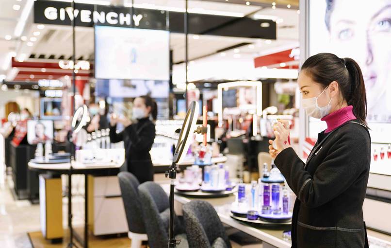 今年天貓618,門店直播大爆發,商圈直播在北上廣杭等全國50余城興起。走進銀泰百貨,品牌門店、柜臺挨家挨戶都豎著直播架、補光鏡和手機,柜哥柜姐集體做直播,熱火朝天。