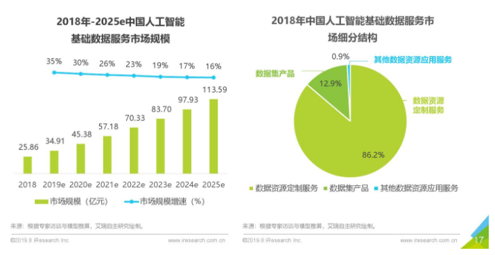 根據(jù)艾瑞咨詢《2019年中國(guó)人工智能基礎(chǔ)數(shù)據(jù)服務(wù)行業(yè)研究報(bào)告》顯示,人工智能基礎(chǔ)數(shù)據(jù)服務(wù)市場(chǎng)規(guī)模2025年將破百億,行業(yè)復(fù)合增長(zhǎng)率達(dá)到23.5%。憑借著較早的布局和投入,百度智能云數(shù)據(jù)眾包實(shí)現(xiàn)了市場(chǎng)占有率和營(yíng)收規(guī)模業(yè)界第一,2019年業(yè)務(wù)年度增長(zhǎng)率超50%。今年,新基建成為促進(jìn)經(jīng)濟(jì)發(fā)展的新方向,人工智能則是新基建的代表性技術(shù),為數(shù)據(jù)服務(wù)行業(yè)的發(fā)展注入新的動(dòng)力。