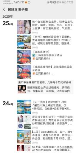 除此之外,可以在群內看到各種各樣的信息通知,比如往抖音視頻端的引導,直播預告,團購秒殺,也有一些其他爸媽的社區日記??傊?資訊都是圍繞親子生活,內容來源也都是爸媽營自己的產品體系。