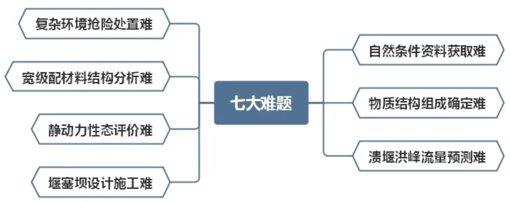 堰塞體從應(yīng)急搶險(xiǎn)到后續(xù)處置再到改造為造福一方的堰塞壩水利樞紐,面臨著諸多難題,主要有七大難題: