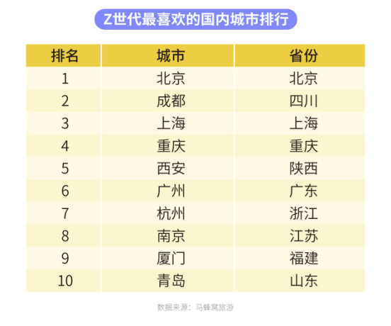 在國內(nèi)游方面,Z世代的消費決策周期發(fā)生了小幅變化。疫情前“說走就走”的年輕游客占比36.02%,疫情后這一比例小幅下降至29.19%,但年輕游客的平均旅游決策周期并未出現(xiàn)明顯變化。北京、成都、上海、重慶、西安在最受Z世代關(guān)注的國內(nèi)游目的地中排名前五。