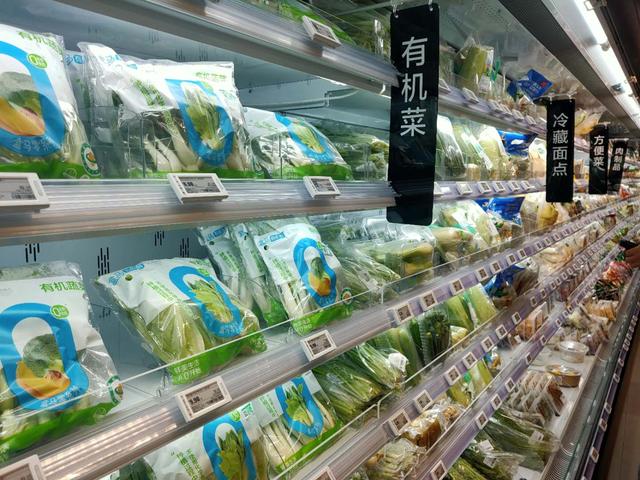 而另一邊的貨架則主要是生鮮產(chǎn)品,居民日常所需要的瓜果蔬菜都可以在這部分區(qū)域買到。
