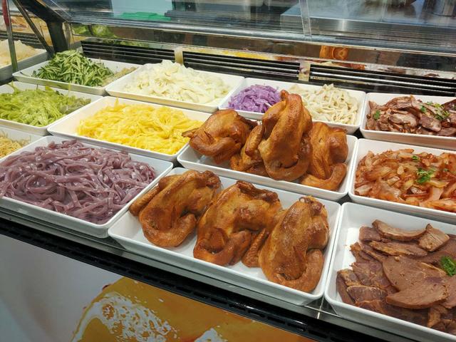 此后,我們可以看到售賣熟食的檔口,包括燒雞、熏雞、豬頭肉以及涼菜等即食性商品都可以在這里買到。