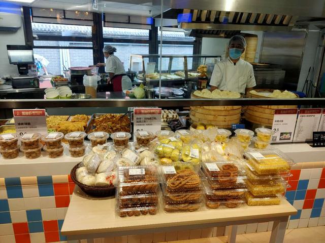 一進(jìn)入盒馬mini黃寺店,首先映入眼簾的是護(hù)國寺小吃的檔口,這里主要售賣包括包子、饅頭、煎餅、油條等在內(nèi)的主食,可以滿足消費(fèi)者對于早餐的多重選擇。同時(shí),該區(qū)域還增開了臨街檔口,方便附近居民在不進(jìn)店的情況購買。