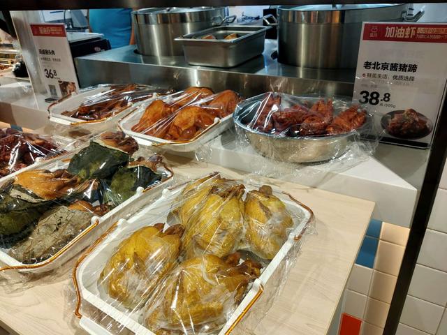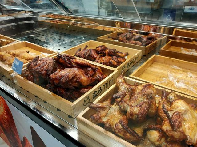 盒馬鮮生店內(nèi)的”海鮮島”區(qū)域在盒馬mini中也被完美”復(fù)制”,炸丸子、小酥肉、藕盒以及甜皮鴨等都可以在這里買到。