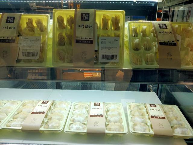 接下來,我們可以看到售賣盒馬工坊餃子以及餛飩的檔口,消費(fèi)者可以直接購買這些現(xiàn)制現(xiàn)售的面點(diǎn)。