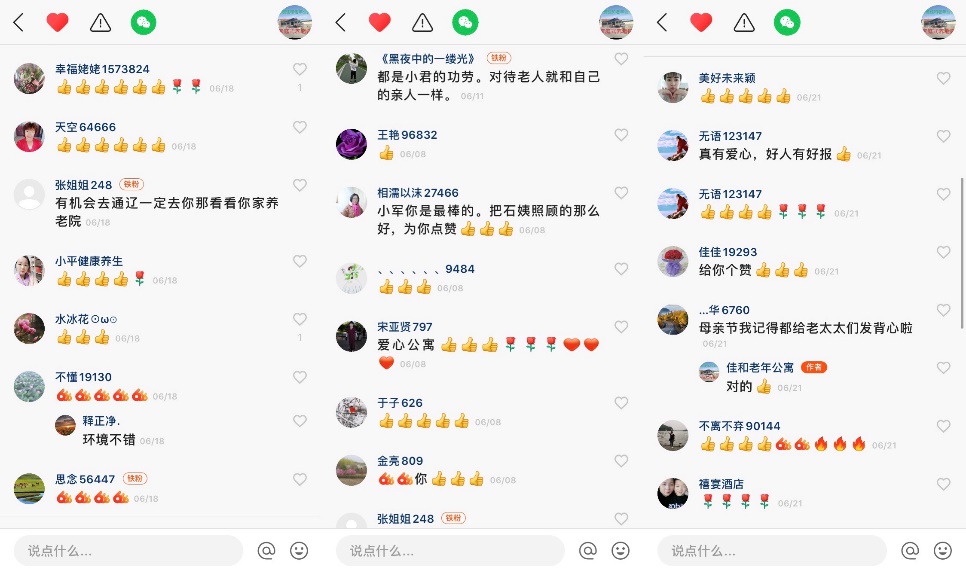“我不是為了把自家養老院變成‘網紅’養老院,只是想讓大家對老年生活有個更直觀的感受,對自己的父母多點關心和陪伴,如果順便能對行業有所啟示,那是再好不過了?!睆埵缇谥辈ラg中跟老鐵們交流時這樣說。