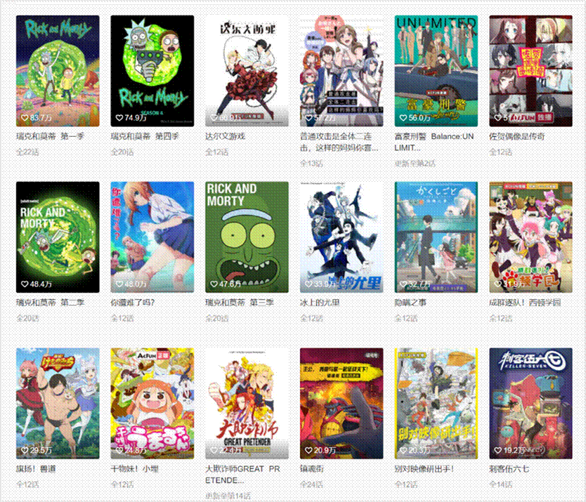 自從被快手收購以來,A站的版權(quán)內(nèi)容始終保持精品化的策略,憑借精準(zhǔn)的選番眼光拿下了一部又一部霸權(quán)番:購入超人氣動(dòng)畫《佐賀偶像是傳奇》,讓外界看到了A站的復(fù)蘇之路;引進(jìn)《你遭難了嗎?》《普通攻擊是全體二連擊,這樣的媽媽你喜歡嗎?》《旗揚(yáng)!獸道》等特色番劇,播放量均在5000萬以上;后續(xù)的《達(dá)爾文游戲》播放量超過1.1億,美國神級(jí)動(dòng)畫《瑞克和莫蒂》系列總播放量更是高達(dá)9億。