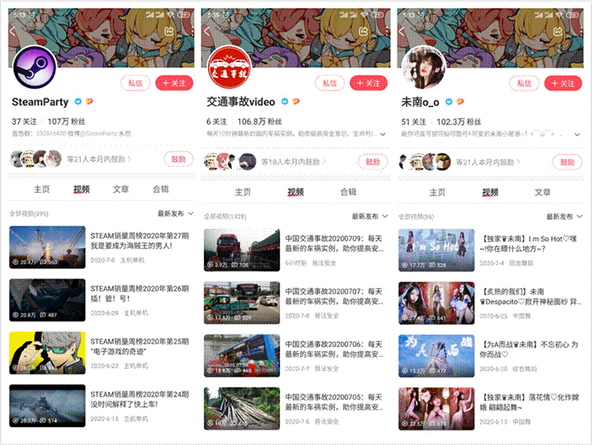 除了版權(quán)內(nèi)容的精準(zhǔn)擴(kuò)充,A站在打造PUGC生態(tài)上也收獲頗豐。2019年12月,A站推出“2020計(jì)劃”,即2020年打造20位百萬粉絲級(jí)別的UP主,旨在通過打造頭部UP主帶動(dòng)A站在PUGC領(lǐng)域的話語權(quán)提升。在A站的保姆式服務(wù)之下,交通事故video、SteamParty、未南等UP主已達(dá)成百萬粉絲目標(biāo),老紳、胖胖的山頭等UP主也在奔向百萬粉絲的路上。