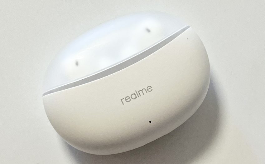 外觀方面,真我Buds Air3 Neo的耳機盒的非常獨到,鵝卵石形的外盒,下方為霧面磨砂的白色,觸感十分親膚,上半部分更是大膽地采用了半透明的設計,官方稱之為“音樂太空艙”設計。