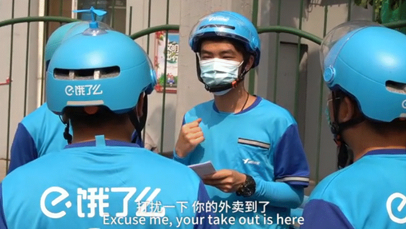 除了時間自由,掙得工資比較高,能夠滿足學生黨的日常生活之外,他還把送外賣的過程當作備考期間減壓放松的方式。工作中他發現經常會碰到外國友人下單,于是休息時間他也開始嘗試在站點教同事一些基本英語對話,以提高同事與顧客的溝通效率。