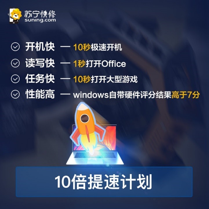 據了解,蘇寧快修電腦十倍提速服務共有兩種提速方案供用戶選擇。其一,機械硬盤電腦提速計劃,通過在機械硬盤電腦上加裝固態(tài)硬盤,將固態(tài)硬盤作為電腦系統(tǒng)運行盤,原機械硬盤作為電腦資料存儲盤;其二,固態(tài)硬盤電腦置換擴容計劃,將原有小容量固態(tài)硬盤替換為大容量固態(tài)硬盤,從而使電腦運行速度提升 3-10 倍。