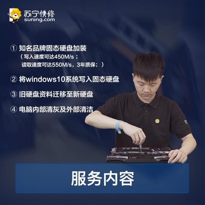 此外,蘇寧快修工程師在加裝、更換固態(tài)硬盤后,還會替消費者重新安裝 Windows 10 系統(tǒng),將舊硬盤資料遷移至新硬盤,并對電腦內外進行全面清灰清潔,保障低溫、超靜音運行,有效延長電腦電池使用時間。