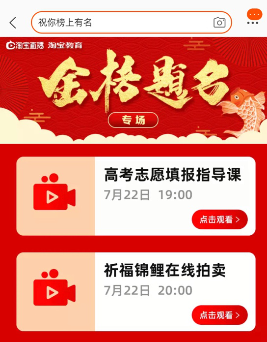 俗話說,七分考,三分報。隨著各省市的高考成績陸續出爐,淘寶上的志愿填報直播日益火爆。甚至還有一條用來祈福求好運的錦鯉近日在淘寶直播間里被拍賣出1萬多元的“天價”。
