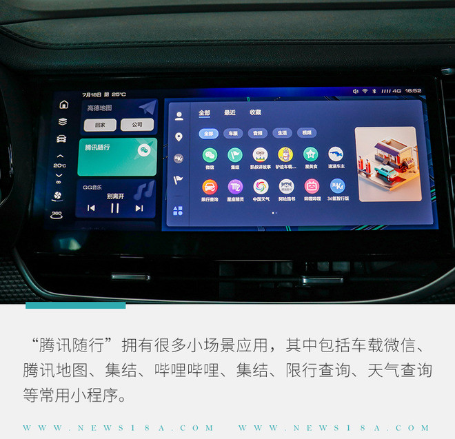 如何理解“騰訊隨行”中的小場景應用呢?您可以類比微信的小程序,也就是說,這些小場景應用無需下載安裝,隨點隨用,非常便捷。網通社在與工程師溝通中獲悉,目前試裝版車型僅放置了常用的小場景應用,未來理論上可以增加到上百萬個,因為這在騰訊的生態中與微信小程序是打通的。