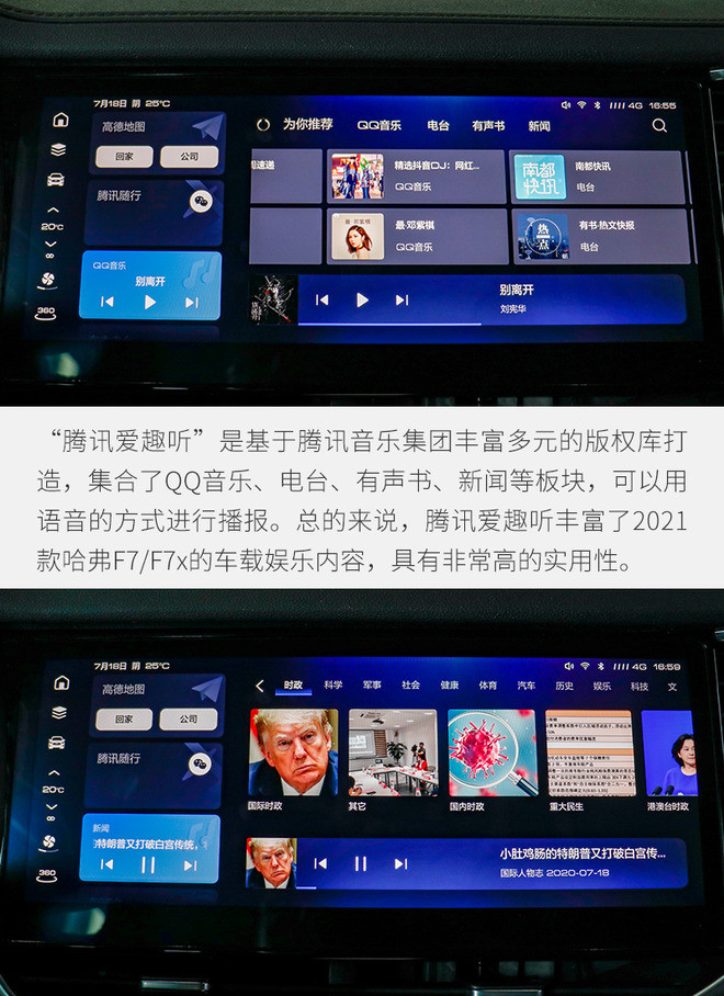 事實上,這套車機系統最大的亮點是集成了騰訊車聯TAI3.0功能,具體來說是配備了“騰訊隨行”、“騰訊愛趣聽”兩大車載應用,以及騰訊的全雙工語音技術。