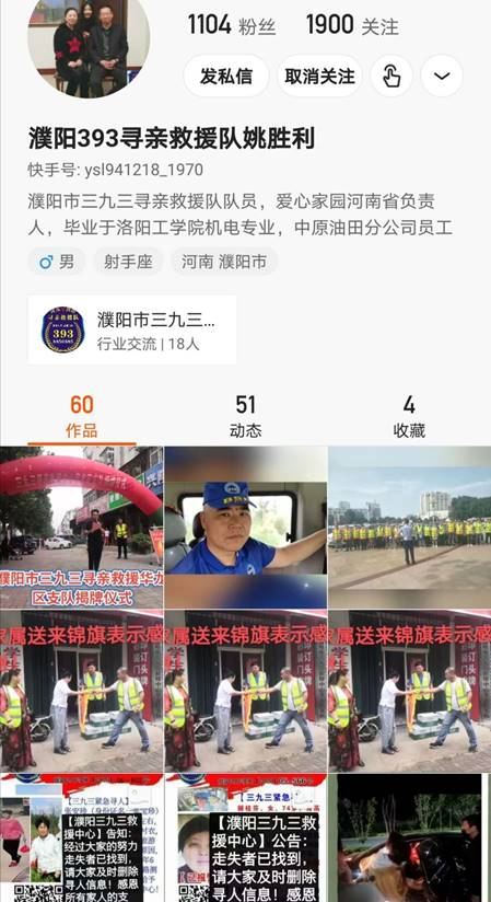 二棒接力手——“濮陽393尋親救援隊姚勝利”(快手號:ysl941218_1970)