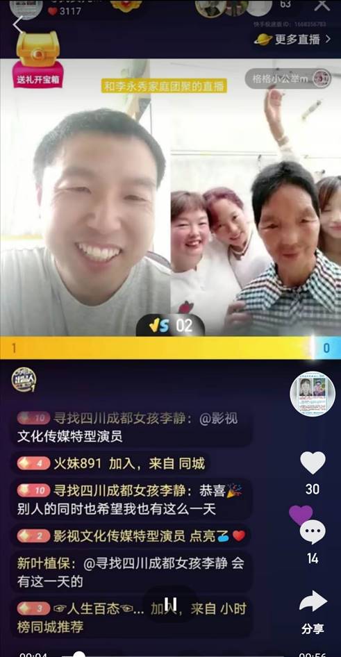 師春鑫說,他會繼續尋找女兒,也會繼續助力需要他幫忙尋親的快手老鐵。“既然快手將我們連接起來,那我就充分用好這個優勢,如果老鐵們身邊有來歷不明的孩子或者想尋親的人,歡迎和我連麥。”
