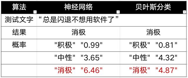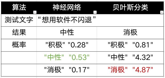 圖為:神經網絡與貝葉斯算法對意向分析對比圖
