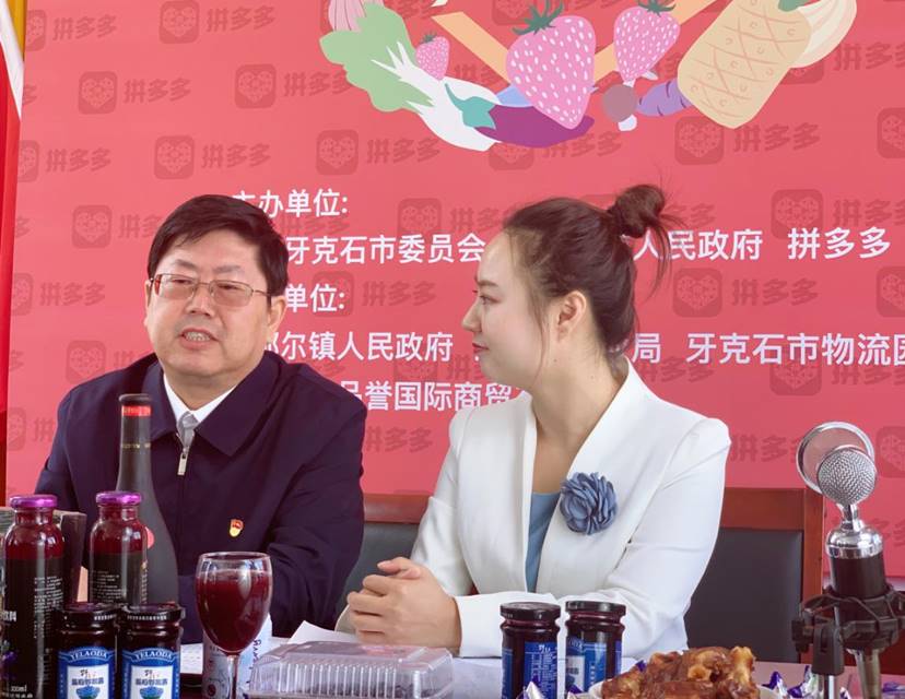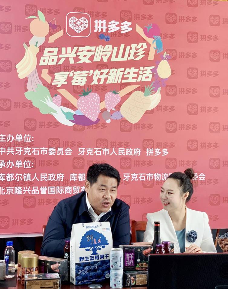 8月14日,內蒙古自治區牙克石市委副書記、市長臧著強,庫都爾林業局黨委書記董曉斌走進拼多多直播間,為當地的野生藍莓、沙棘等深加工產品“代言”。