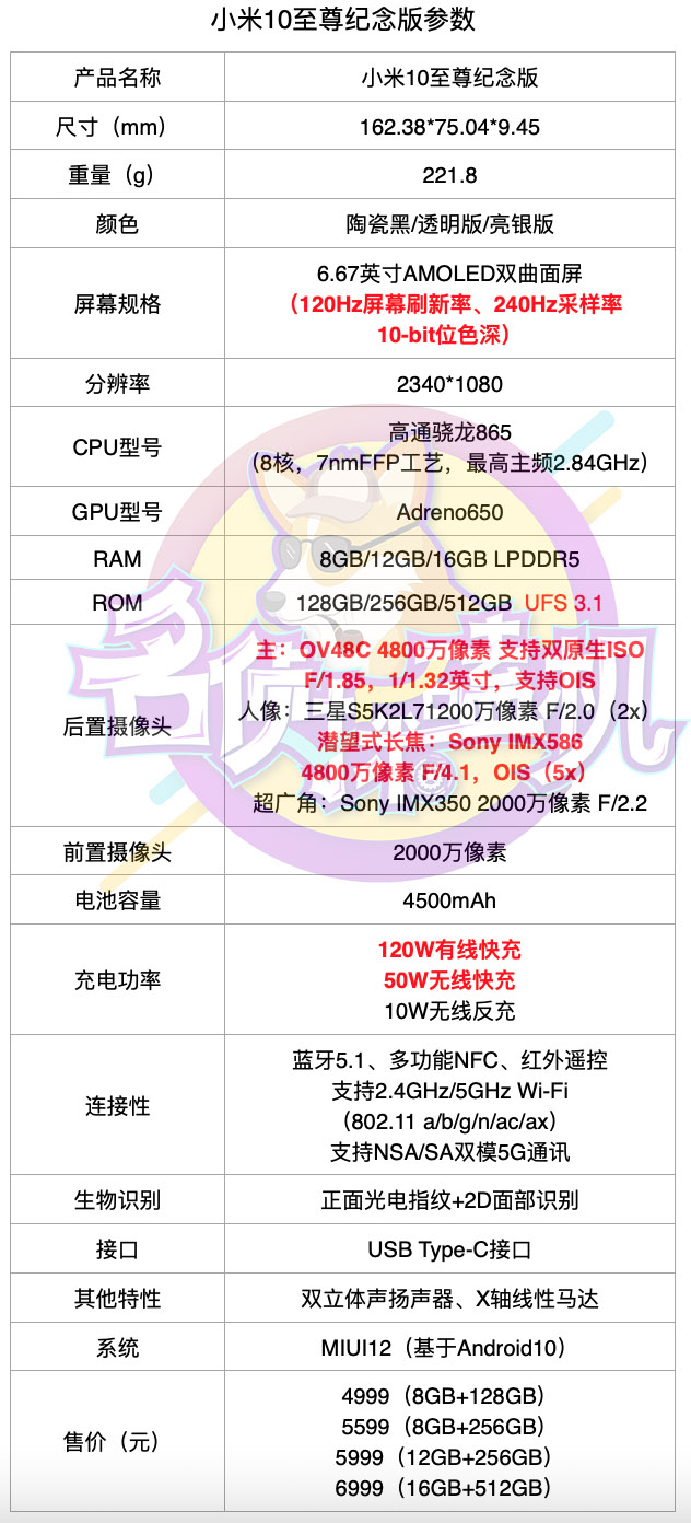在小米十周年演講上,小米集團(tuán)創(chuàng)始人、董事長(zhǎng)兼CEO發(fā)布了小米10至尊紀(jì)念版,作為官方定義的“十周年集大成之作”,在屏幕升級(jí)到120Hz、增加最大120倍數(shù)碼變焦的潛望式長(zhǎng)焦鏡頭之外,更是首發(fā)量產(chǎn)了120W的超級(jí)閃充功能。