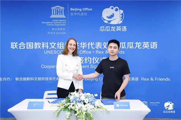 8月24日,聯合國教科文組織駐華代表處和瓜瓜龍英語簽約儀式,在北京成功舉辦。活動中,聯合國教科文組織與瓜瓜龍英語簽署了合作協議,雙方將展開深度合作,促進中國兒童、家長以及教師的媒介與信息素養。