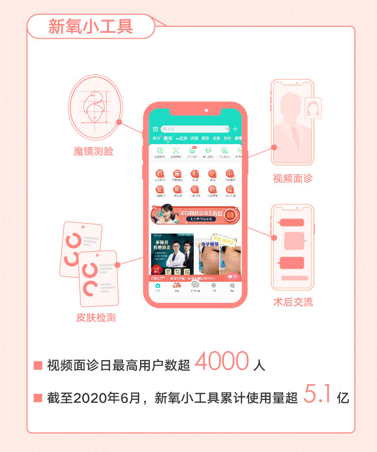 作為第一家實現醫美線上化的互聯網平臺,新氧開創了“內容社區+電商”的新氧模式,實現消費者在醫美項目前后能及時與醫生交流信息,打破了醫美領域的信息不對稱格局。而這種全新醫美模式的優勢在疫情期間尤為凸顯。當線上化成為疫情期間各行業核心競爭力之一時,新氧幫助線下機構減小了門店 “休眠”帶來的生存壓力,繼續為消費者提供豐富資訊,為醫美機構與求美者搭建溝通橋梁。