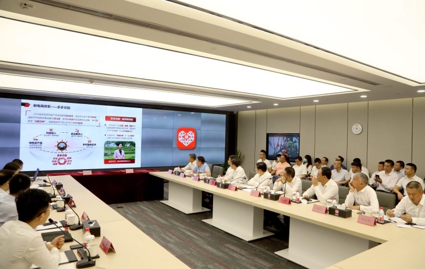 ▲協(xié)議簽署前西雙版納州黨政領(lǐng)導和企業(yè)代表團訪問拼多多上海總部并召開座談會。(攝影:上官瑜)