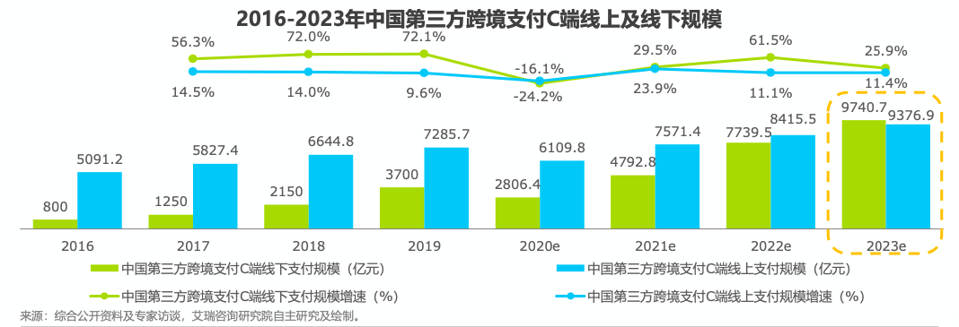 (圖說)艾瑞發(fā)布2020跨境支付行業(yè)報告:預計到2023年,跨境支付C端線下規(guī)模或?qū)⑹状纬^線上。