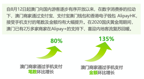 (圖說)在2020國慶黃金周期間,澳門已有2萬多家商家在Alipay+的支持下,喜迎內(nèi)地客流復蘇回暖。