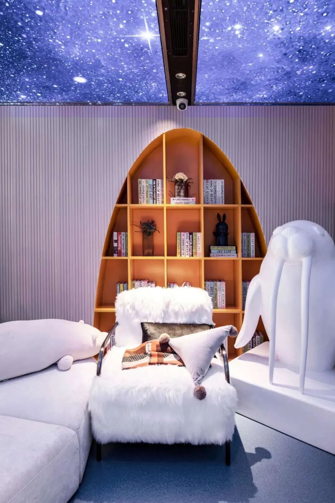 生活館是24悅愛社區“臻愛家”的IP模塊,長桌舍棄傳統造型,用一圈圈流動的弧度帶動了空間的動感,人們自然地被書香吸引。大發地產熙悅產品線以高質量的社交圈、圈層、社群運營,與業主的身份匹配。
