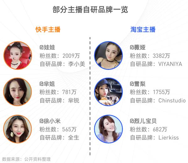 對于已經(jīng)有一定粉絲影響力的頭部腰部服飾主播而言,品牌化是持續(xù)擴大粉絲影響力、提高粉絲忠誠度和粉絲轉(zhuǎn)化的重要手段。目前,粉絲數(shù)2009萬的快手主播娃娃自研品牌李小美、781萬粉絲的羋姐自研品牌羋銳,565萬粉絲的徐小米自研品牌全生以及淘寶主播薇婭、雪梨等的自研品牌均在增加產(chǎn)品標識性,強化產(chǎn)品認知,拓展外部銷售渠道以及提高直播效果上展現(xiàn)出顯著優(yōu)勢。