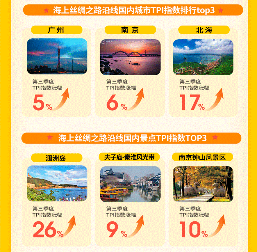 過去幾年, 國人的足跡遍布國外熱門沿海城市和海島,2020 年的疫情,讓中國游客開始關(guān)注祖國的海島度假城市。相應(yīng)地,“海上絲綢之路”的沿線城市自然就成了第三季度 TPI 指數(shù)整體表現(xiàn)突出的領(lǐng)域——這里兼顧濱海度假與文化體驗(yàn),在文化旅游愈加流行的趨勢(shì)下,無論是親子游客還是年輕游客,都希望在度假之余有更深入的文化體驗(yàn)。
