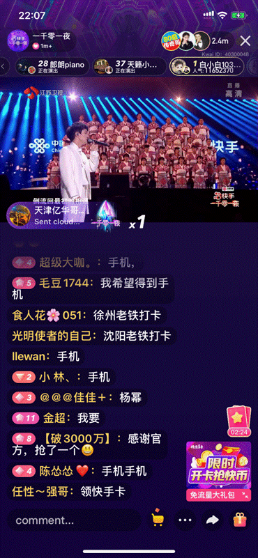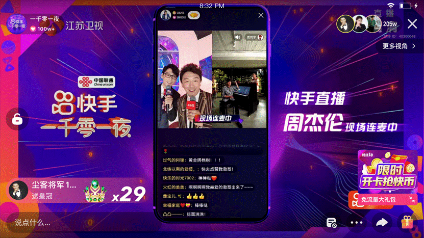 本次晚會作為快手攜手江蘇衛視傾力打造的“臺網跨界聯動大作”,在節目內核和呈現形式上實現了大小屏的深度融合,在快手的低延時連麥、實時隱身等眾多黑科技加持下,為觀眾帶來了超多驚喜。