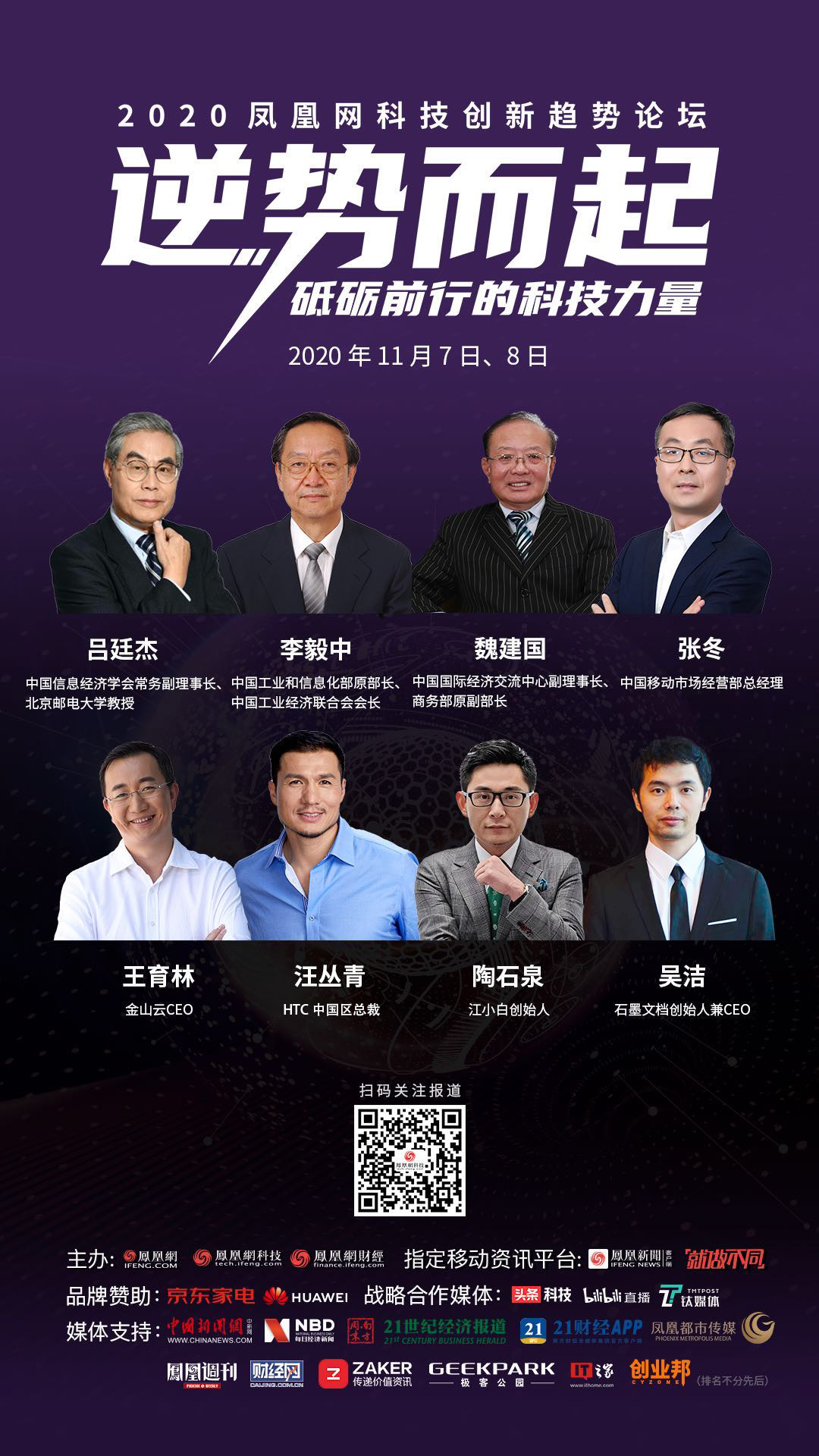 11 月 7 日至 8 日,由鳳凰網、鳳凰網新聞客戶端主辦的“2020 鳳凰網科技移動創新趨勢“論壇正式在線上召開,本屆論壇主題為“逆勢而起、砥礪前行的科技力量”,由京東贊助播出。論壇聚焦中國科技力量的崛起之路,邀請了多位學界人士和企業領袖,以期凝聚各方智慧與共識,為大家深入剖析不尋常時期下中國科技面臨的機遇與挑戰。