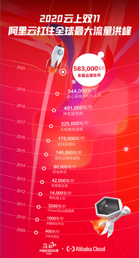 58.3萬筆/秒,這一數(shù)字是2009年第一次天貓雙11的1457倍,消費者體驗仍“如絲般順滑”。