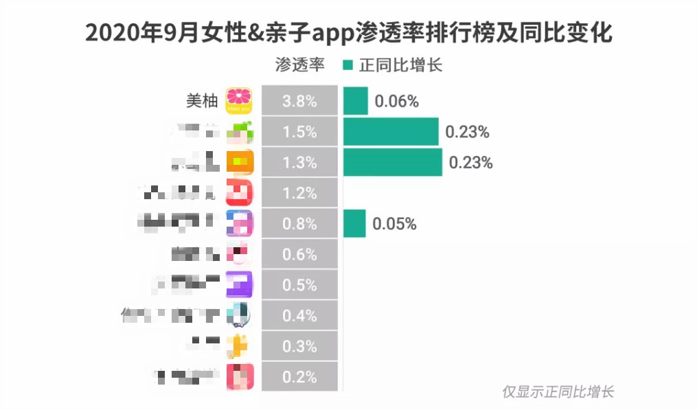 而在各個細分領域,原本就已身處頭部的品牌也在持續擴大領先優勢。如在女性&親子領域,該行業的滲透率由1月的8.4%攀升至9月的10.4%,而美柚APP在其中憑借絕對的用戶基數優勢,以3.8%的滲透率領跑。值得一提的是,美柚APP的DAU在該領域也繼續位列第一。