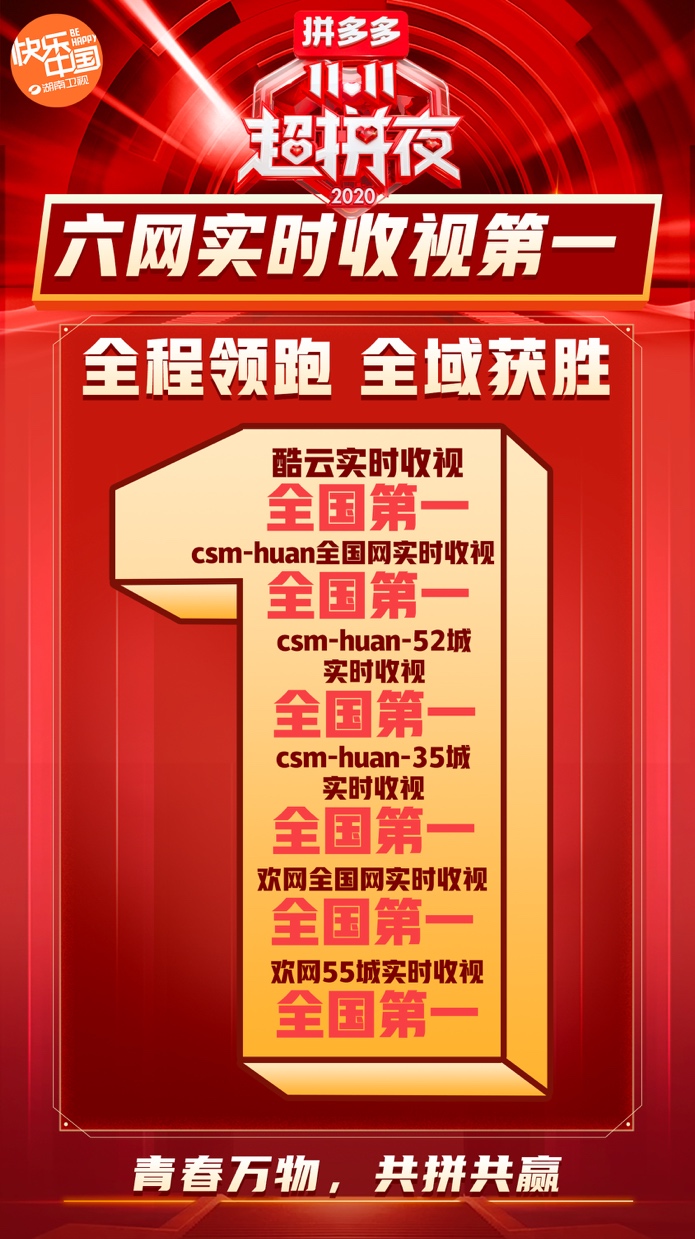▲11月10日,拼多多聯(lián)合湖南衛(wèi)視打造的“11.11超拼夜”晚會(huì)實(shí)現(xiàn)6網(wǎng)同時(shí)段收視率第一的佳績(jī)。