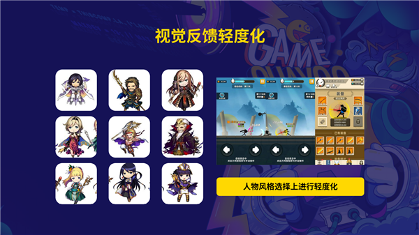 《我也是大俠》先從歷史吸量測試的數(shù)據(jù)中,篩選出了更為吸量的橫版格斗、跑酷、自由競技等玩法表現(xiàn)形式,再與研發(fā)的制作人碰撞出可以和掛機(jī)玩法高度契合的題材(武俠、足球等),選擇了輕武俠題材+橫版格斗的展現(xiàn)形式。而在美術(shù)風(fēng)格的探索過程中,Ohayoo的開發(fā)思路是多嘗試、多討論、多迭代。在大概3周的時(shí)間里,項(xiàng)目組一共制作了10版UI和4版人物風(fēng)格,初步通過小范圍的人群調(diào)研進(jìn)行初篩,然后制作30s視頻用于吸量測試,根據(jù)測試確定當(dāng)前版本的連環(huán)畫美術(shù)風(fēng)格,迭代調(diào)優(yōu),快速迭代產(chǎn)出適合玩家的產(chǎn)品。