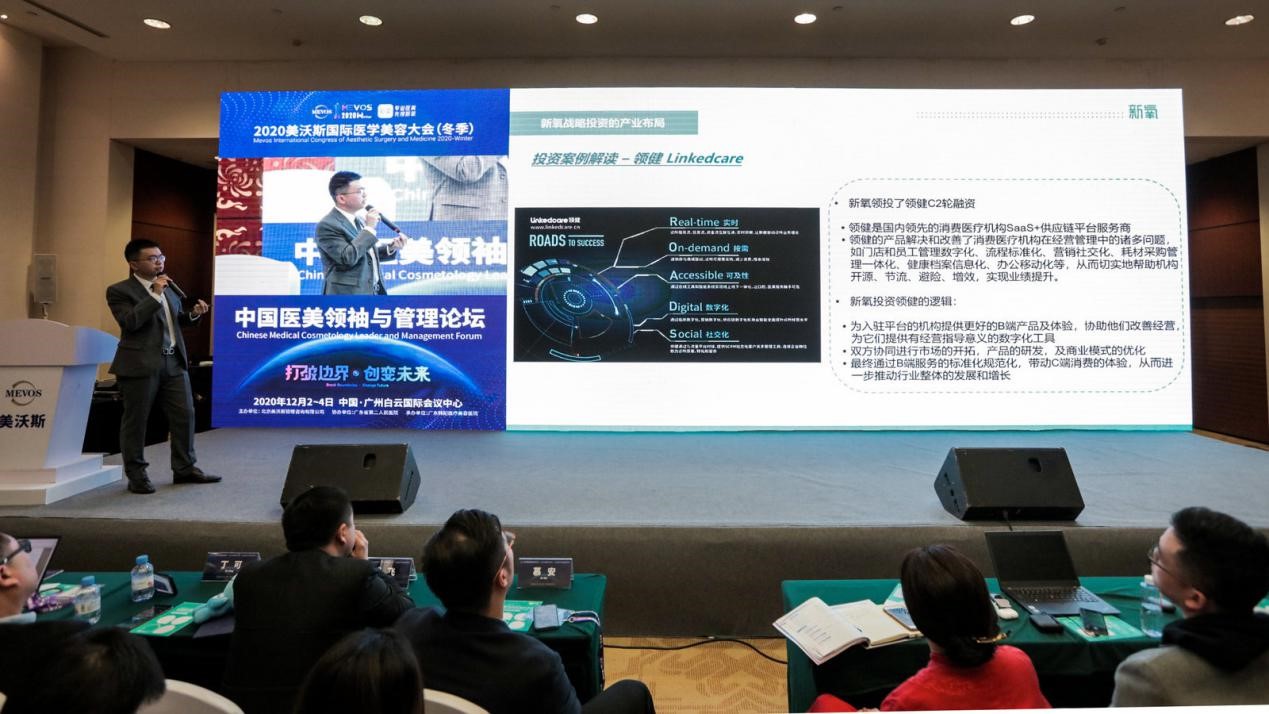 12月4日,2020年(冬季)美沃斯國際醫學美容大會上,新氧科技戰略投資部負責人陳力正式宣告新氧科技在消費醫療領域的投資進展,參與及領投消費醫療SaaS+供應鏈平臺領健的C2輪融資并成為其單一最大股東,進一步夯實新氧科技在齒科領域的領先優勢。