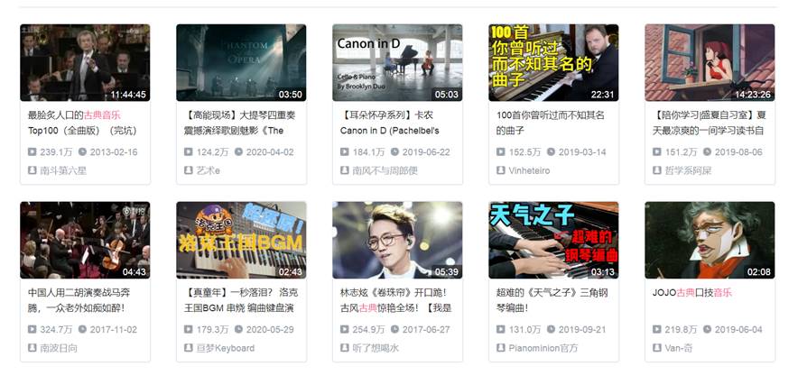近年來,B站正逐漸成為中國最為重要的線上古典樂愛好者聚集地。僅在“古典樂”一個標簽下,就有數萬個投稿視頻和超過3億次播放量。巴西鋼琴家“V叔”、“TwoSetViolin雙琴俠 ”、“鋼琴喵Haburu”等UP主的作品各具特色,百萬播放量屢見不鮮。