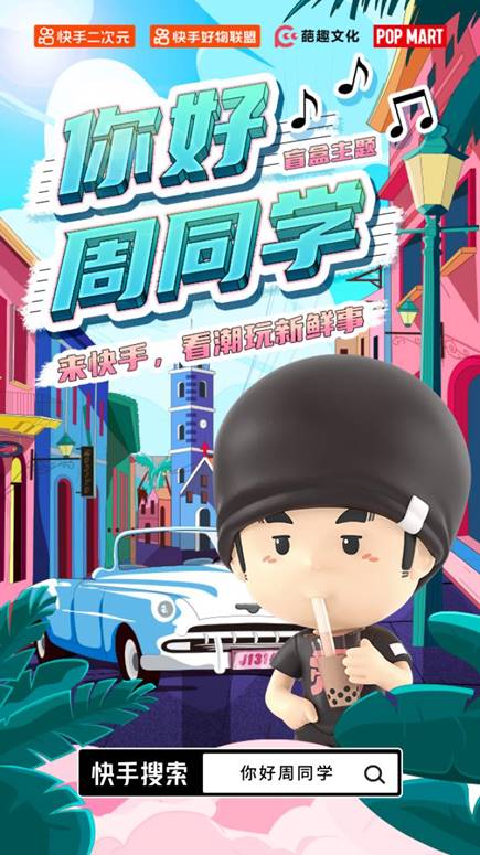 通過近10年的發展和努力,快手已經成長為國內短視頻行業的領軍平臺,在喜歡潮流、時尚的年輕人群體中擁有著極大的影響力。同時近幾年,盲盒這一新興潮流玩具已經成為風靡全國的時尚符號。本次,在快手上獨家首發的“周同學”系列潮玩盲盒是周杰倫官方IP首次進入二次元世界。