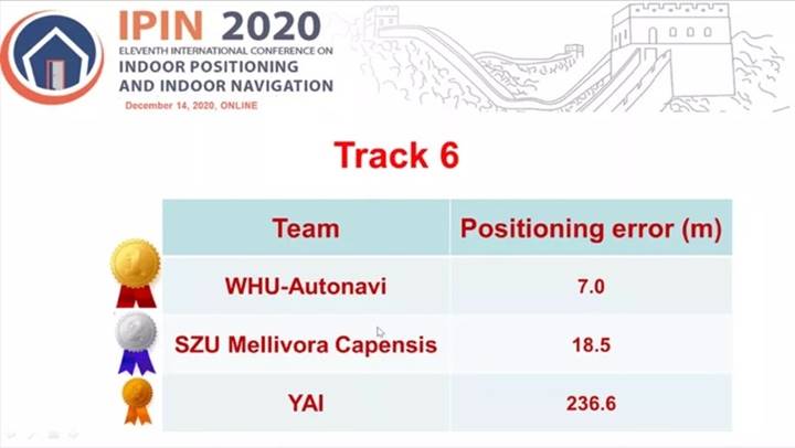 速途網(wǎng)12月25日消息(報道:李楠)在剛剛結(jié)束的定位領(lǐng)域國際頂級賽會IPIN2020比賽中,武漢大學(xué)和高德地圖智能技術(shù)中心定位研發(fā)部聯(lián)合組隊參與了Track 6 組別比賽,以絕對優(yōu)勢奪得冠軍。