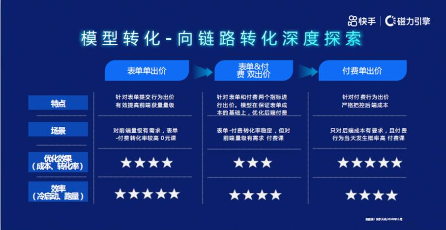 對于廣告主而言,投放回報率是衡量營銷效果的重要指標(biāo)。如何對目標(biāo)用戶進(jìn)行高效轉(zhuǎn)化,實現(xiàn)品銷合一,決定著自身品牌的長遠(yuǎn)發(fā)展。快手磁力引擎經(jīng)過深度探索,推出“表單單出價-表單&付費雙出價-付費單出價”的轉(zhuǎn)化模型,并全方位打磨模型個性化精準(zhǔn)度,反哺后續(xù)投放。