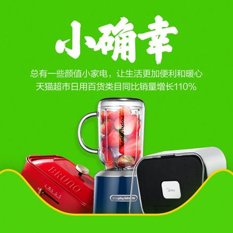 “點滴生活中的小確幸,才能心底溫暖地度過2020的每一天。”暢銷小說作家喬維在天貓超市添購的早餐機、電動泡沫洗手機、水暖毯等生活小家電總額超過了以往任何一年。