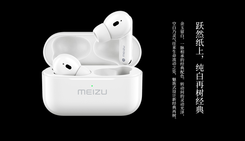 POP Pro?采用了「MEIZU Design」一脈相承的純白配色,此外魅族在?POP Pro?上使用了全新的設計語言「暈染」,墨分五色,如兼五彩,所謂「暈染」來源于中國傳統水墨書畫之法,以點成圓,以暈染之法完成耳機腔體曲線,以點成線,以暈染之法完成自然圓柱過渡。不僅體積更小,重量相比同類產品也更為輕巧,戴起來更為舒適。