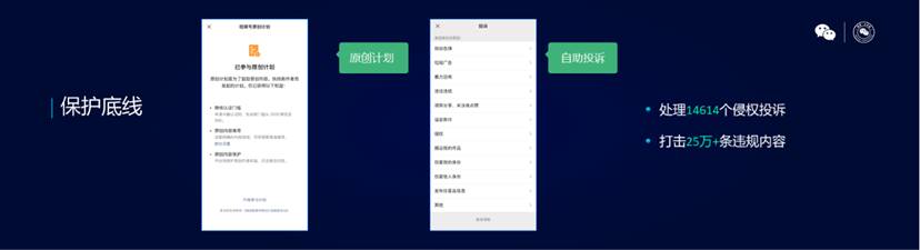 此外,視頻號平臺也推出了原創計劃,在鼓勵原創、保護原創的同時也降低了創作者的認證門檻。針對抄襲侵權內容,創作者也可通過微信視頻號的自助投訴渠道便捷地對侵權內容發起投訴,維護自身利益。2020年,平臺累計打擊超過25萬條誘導騙贊、搬運仿冒等違規內容,共處理14614個侵權投訴,保護了創作者的合法權益。