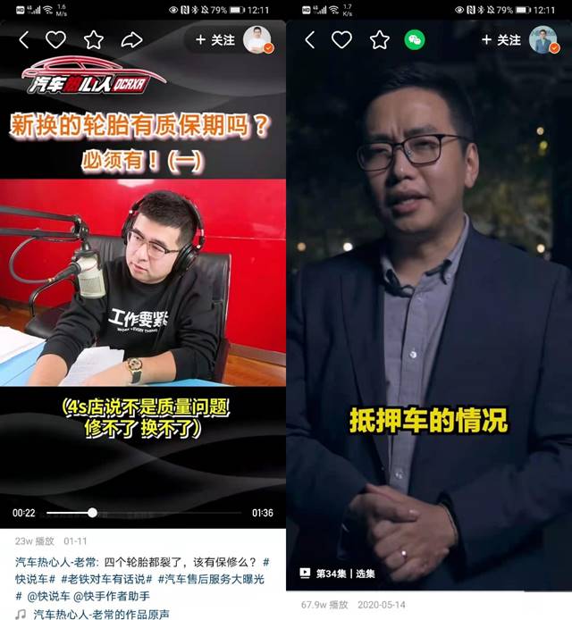 值得注意的是,汽車用戶也逐漸形成在快手等互聯(lián)網(wǎng)平臺上咨詢相關(guān)問題、維護自身權(quán)益的習慣。比如汽車熱心人-老常、車圈崔哥、汽車小辣椒曉明、主持人星寧、大衛(wèi)侃車這五位“汽車熱心人”,都是聚焦汽車維權(quán)的頭部主播,致力于科普汽車購買維修和交通事故中如何用法律武器保護自己。