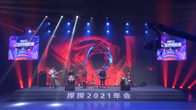 年會(huì)當(dāng)天,酷帥激情的主唱王宇、可鹽可甜的吉他手潘瀅組成的“狐貍樂隊(duì)”率先開場(chǎng),為全體員工帶來酷炫精彩的開年表演,將年會(huì)氣氛首先帶入高潮。滿屏的青春氣息和探探品牌青春悅動(dòng)的DNA完美契合,是探探全員的跨年盛宴,也是年輕人的炫酷聚會(huì)。
